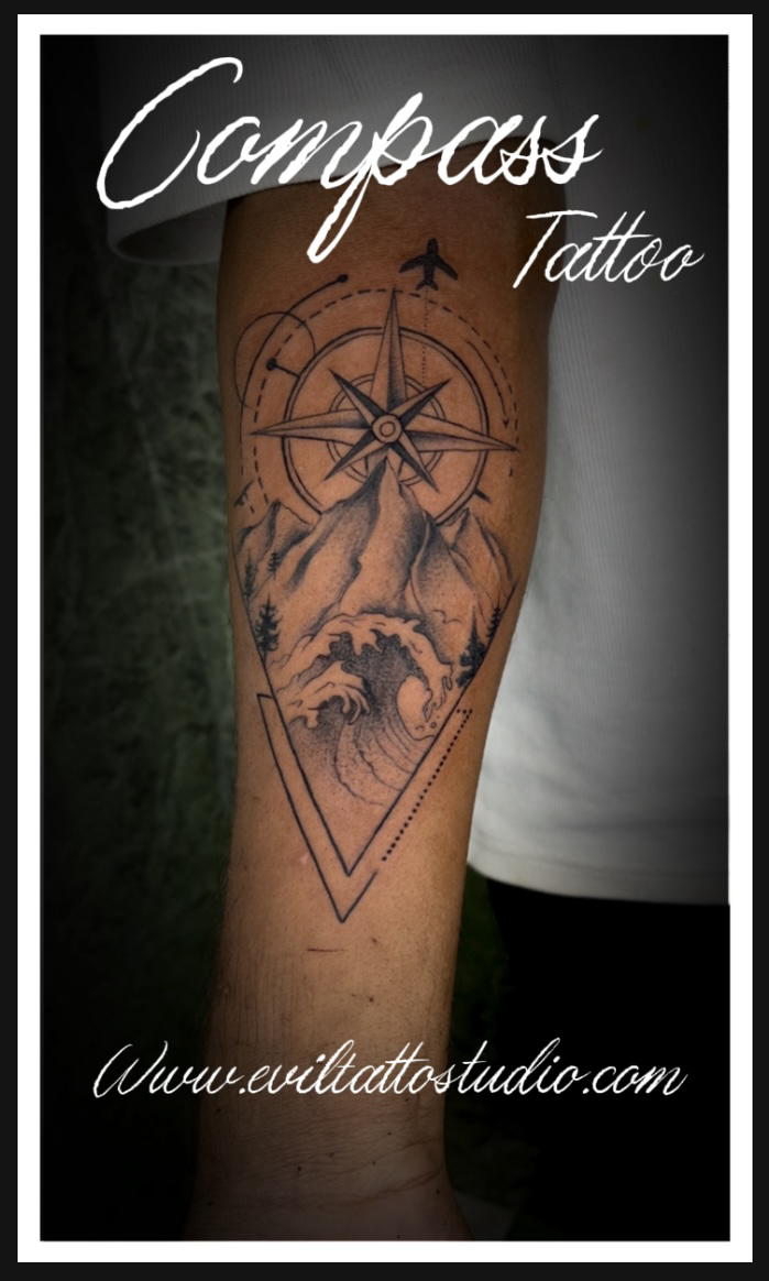 Compass Tattoo Design at Evil Tattoo Studio, Madhapur Looking for a meaningful and stylish compass tattoo in Madhapur? At Evil Tattoo Studio, we specialize in unique tattoo designs that combine art and symbolism. This stunning piece blends a compass, mountains, waves, and an airplane, symbolizing direction, adventure, strength, and the journey of life. Whether you want to express your love for travel, nature, or finding your true path, our professional artists at Evil Tattoo Studio Madhapur will craft the perfect design for you. 📍 Location: Madhapur ✨ Shop: www.eviltattoostudio.com #CompassTattoo #TattooMadhapur #EvilTattooStudio #TravelTattoo #AdventureTattoo #TattooArt #TattooDesign #TattooArtistMadhapur #BestTattooStudio #WaveTattoo #MountainTattoo #ArmTattoo #InkedLife #TattooIdeas #TattooLovers