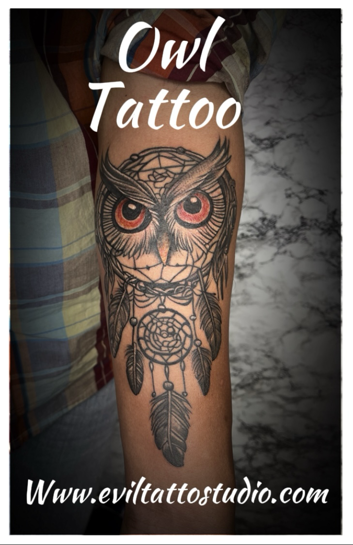 ✨ Transform your style with this stunning Owl Dreamcatcher Tattoo at Evil Tattoo Studio, Madhapur 🦉🎯. The owl symbolizes wisdom and vision, while the dreamcatcher protects against negativity, making this piece both powerful and meaningful. At Evil Tattoo Studio Madhapur, we specialize in detailed custom tattoos that bring your imagination to life with precision and artistry. 📍 Visit us in Madhapur to get inked with designs that tell your story! #EvilTattooStudio #MadhapurTattoos #OwlTattoo #DreamcatcherTattoo #TattooArt #TattooDesigns #TattooStudioMadhapur #HyderabadTattoos #TattooLove #InkLife #TattooArtist #OwlDreamcatcher #TattooVibes #TattooCulture